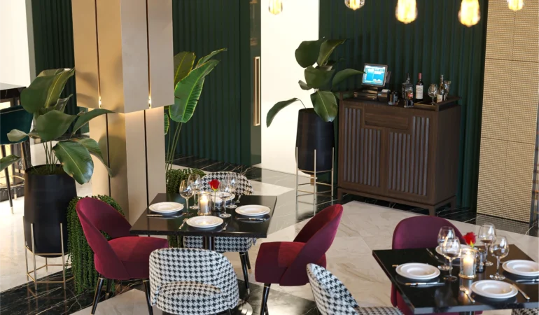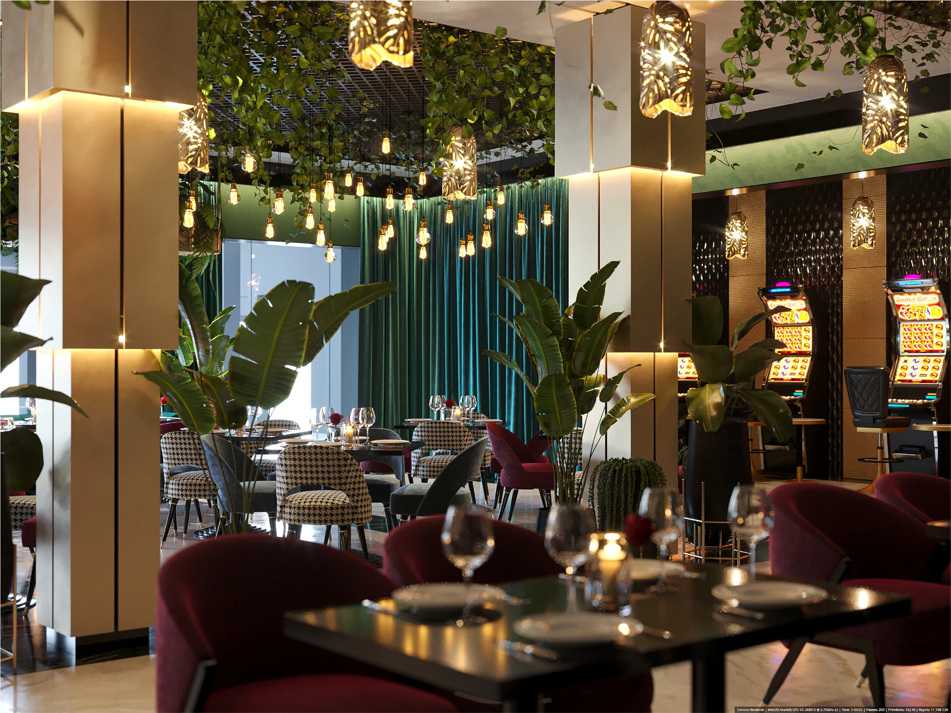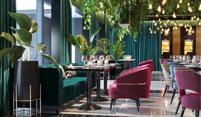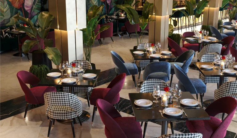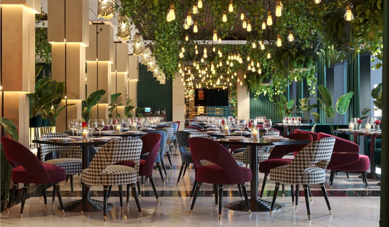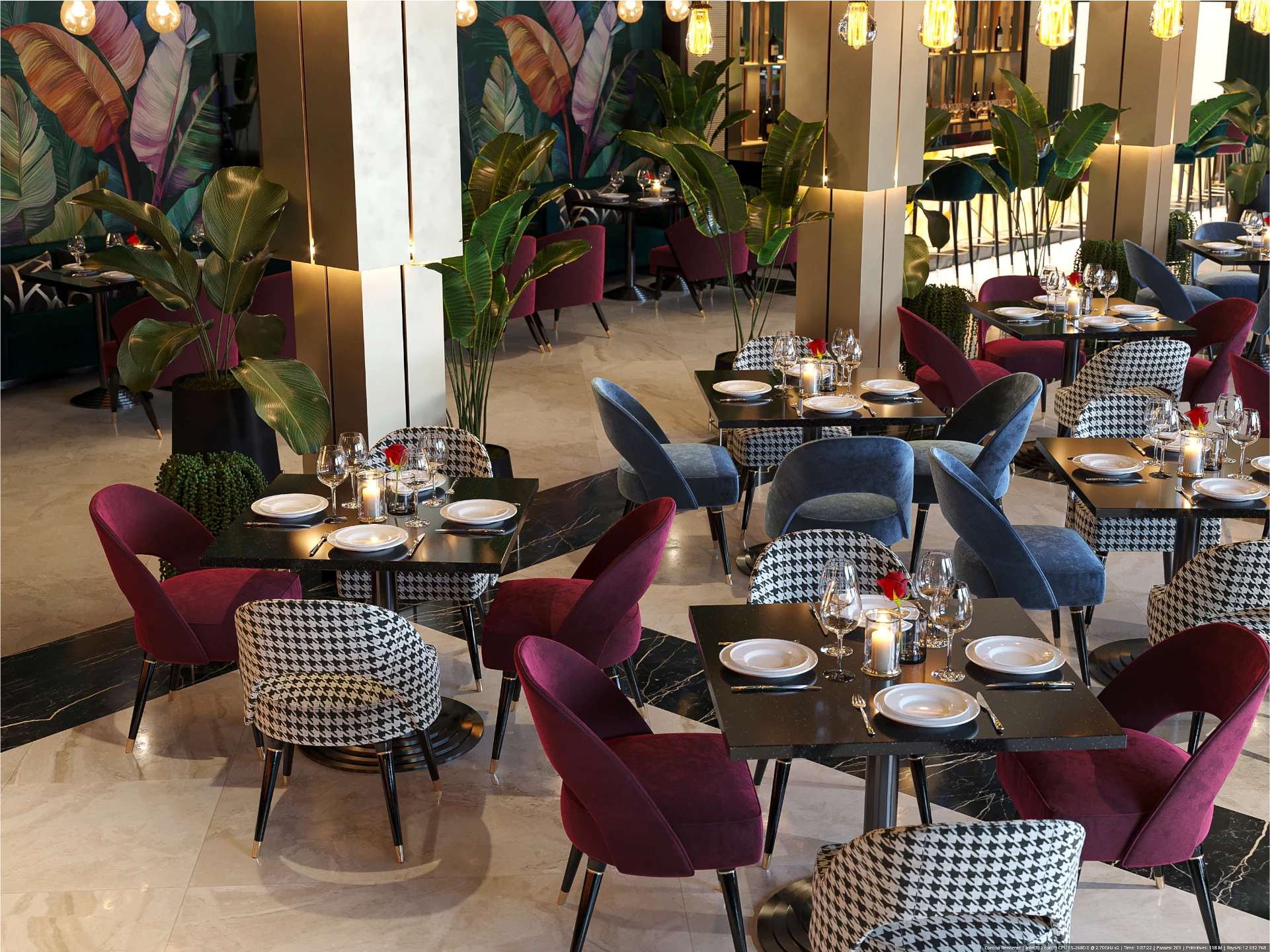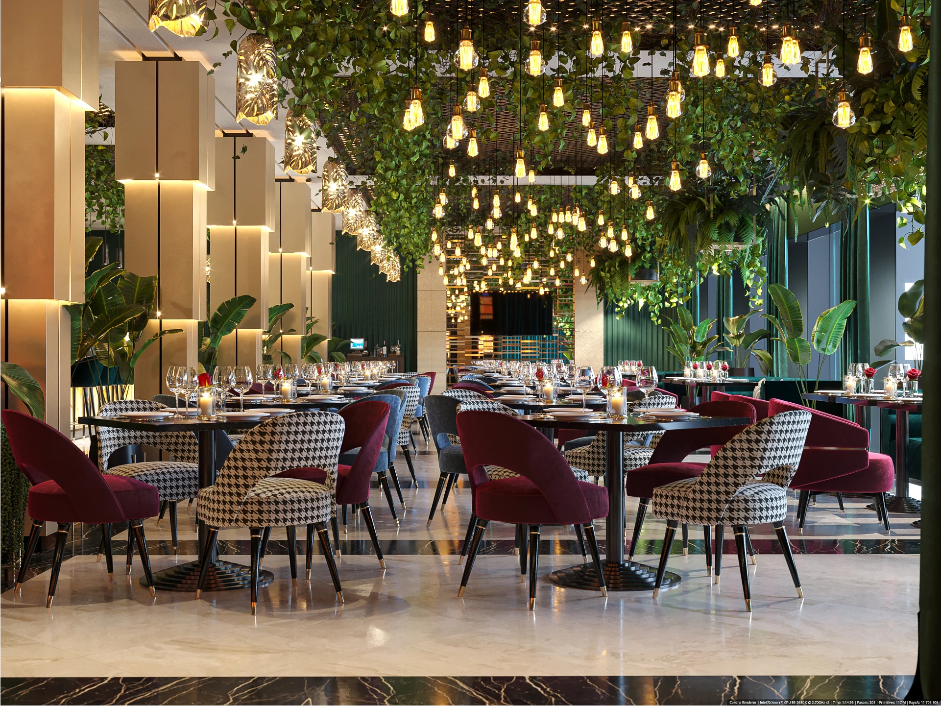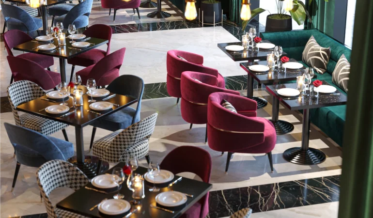 Le design de la salle principale du restaurant vise à créer une atmosphère de détente et de plaisir, où chaque élément de l’intérieur offre un confort exquis aux visiteurs.