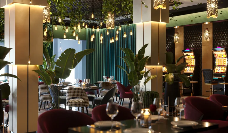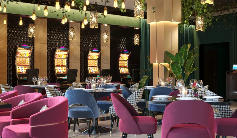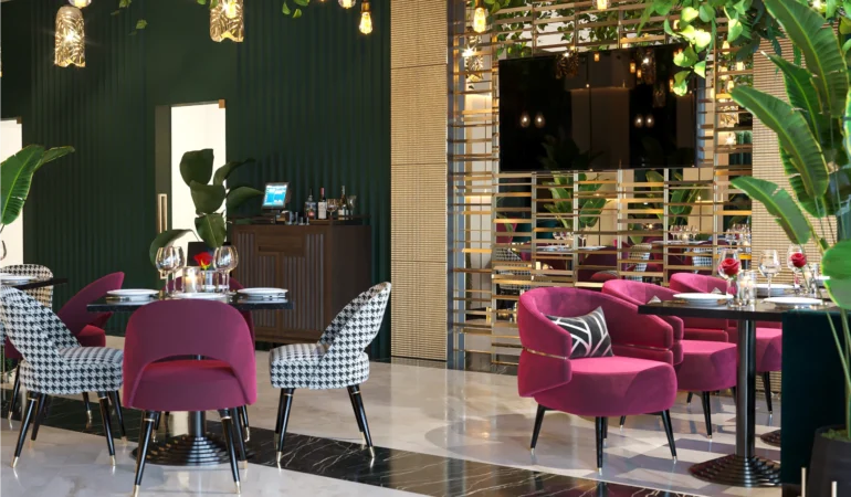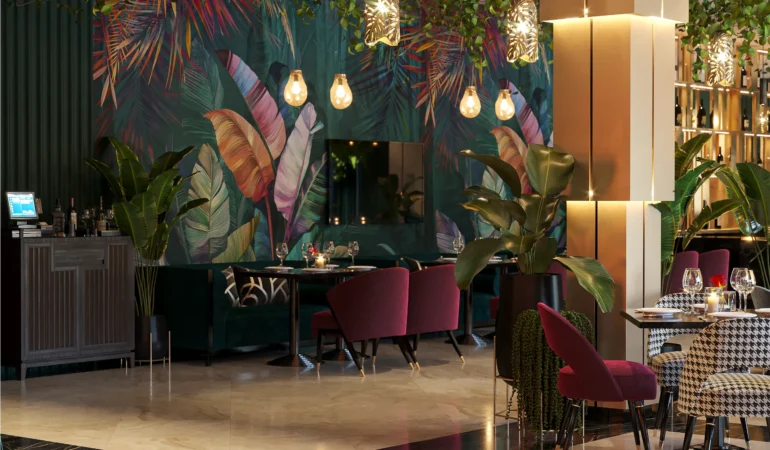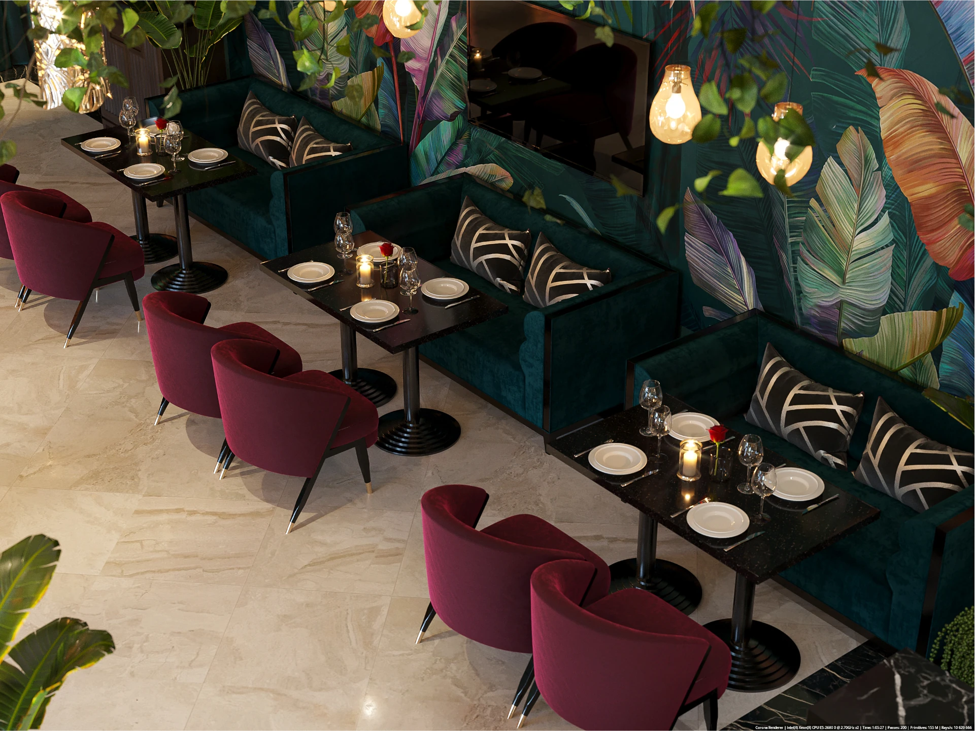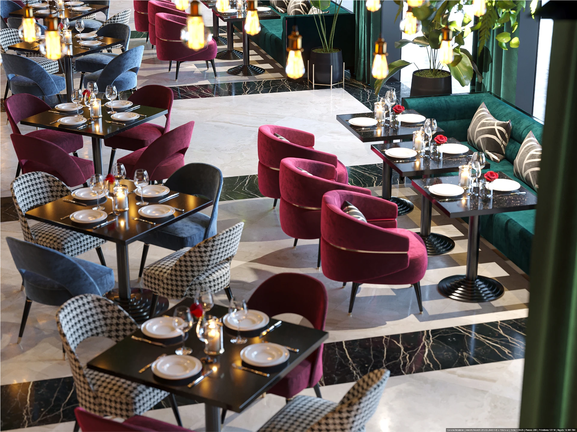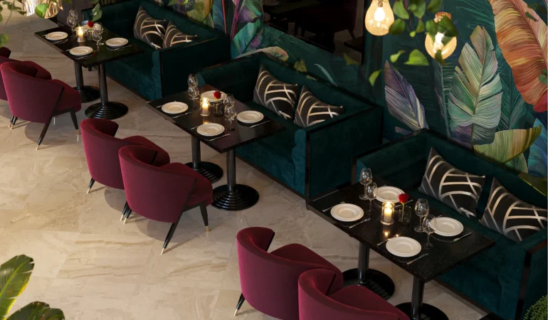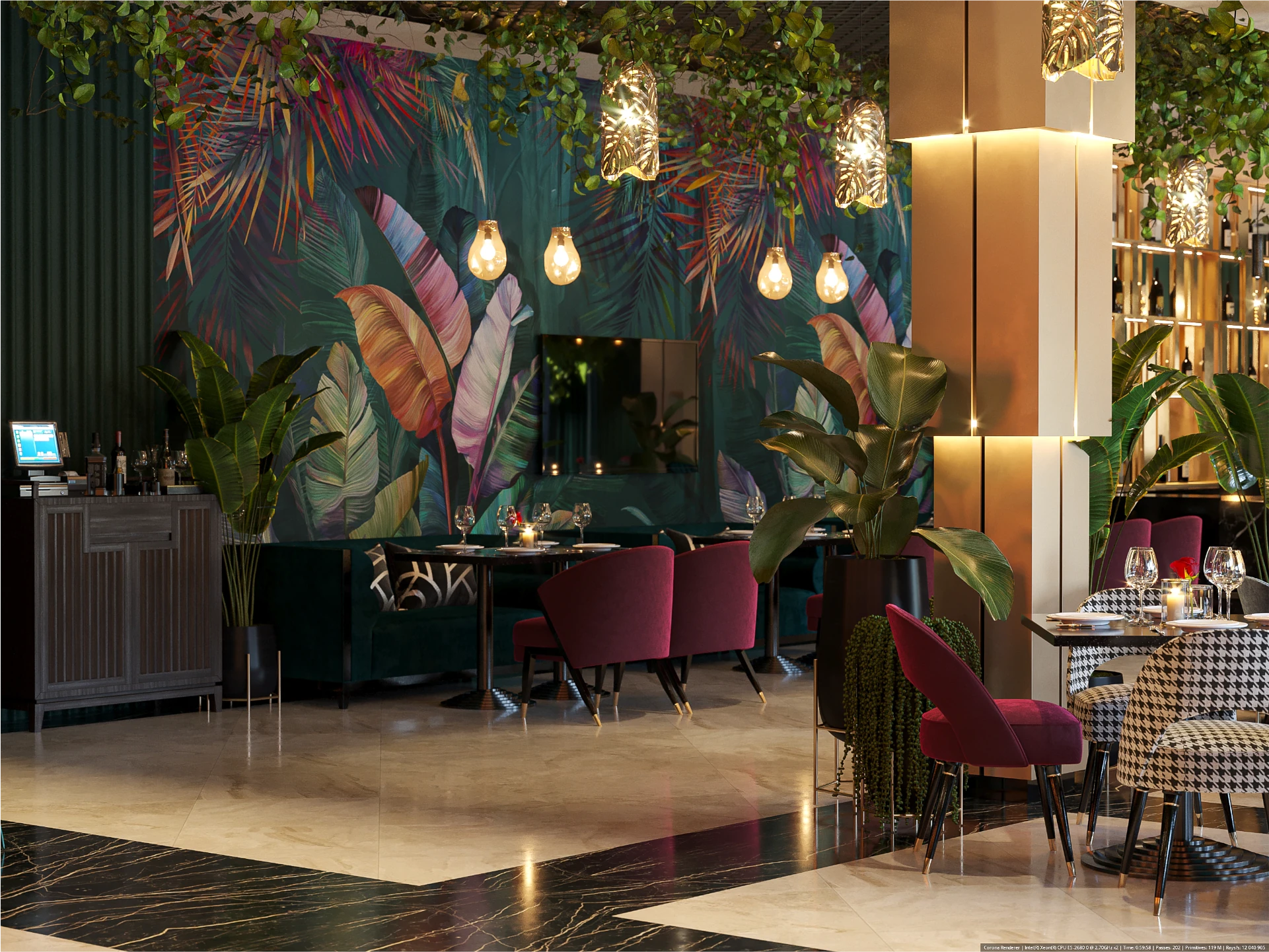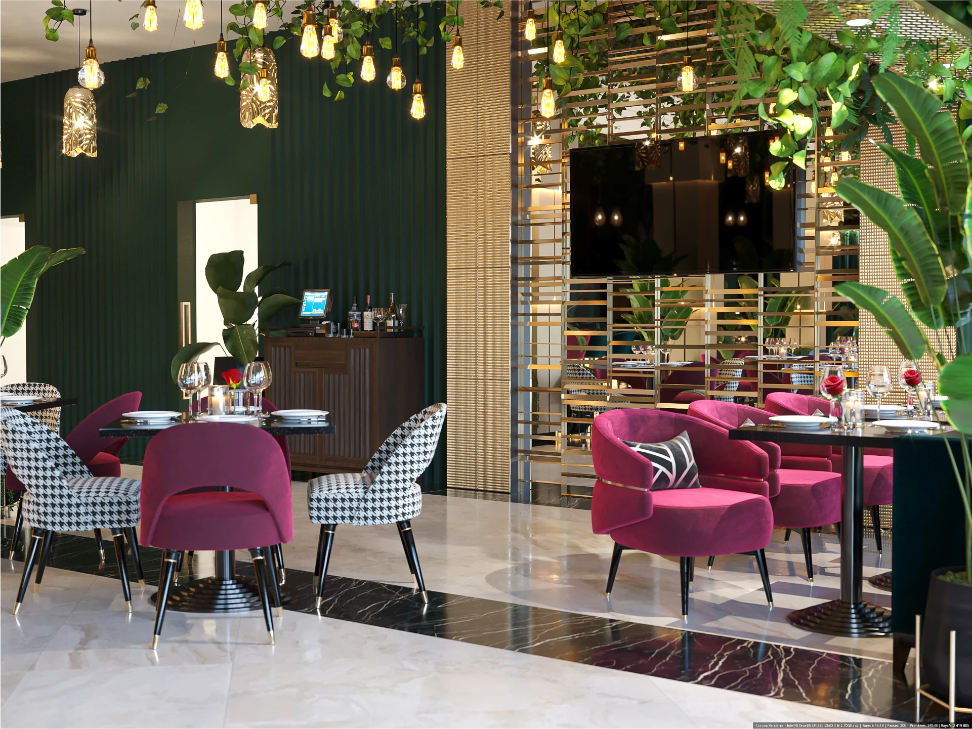 Le design de la salle principale du restaurant vise à créer une atmosphère de détente et de plaisir, où chaque élément de l’intérieur offre un confort exquis aux visiteurs.