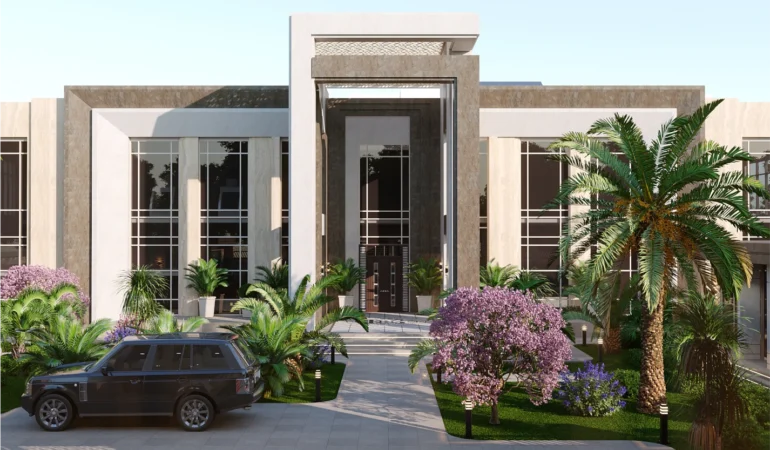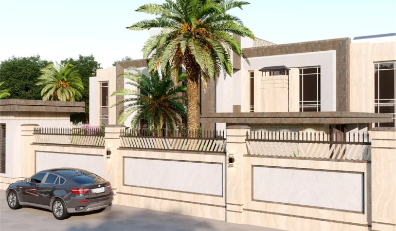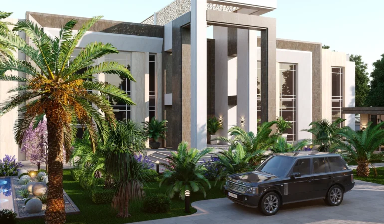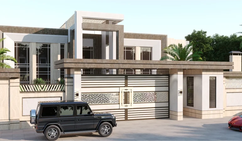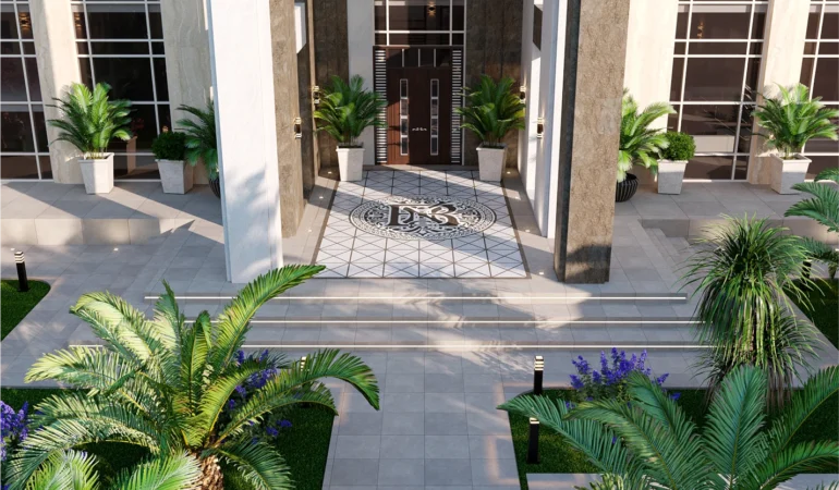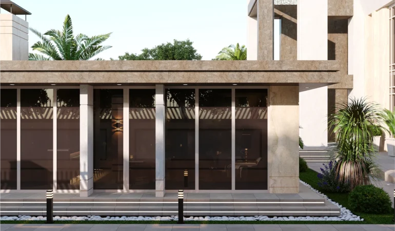 Додатковий акцент на сучасність та легкість екстер’єру робить використання огороджень зі скла та профілів, що не лише забезпечує безпеку, але й візуально розширює простір, створюючи відчуття відкритості та зв’язку з навколишнім середовищем.
