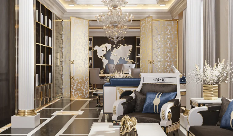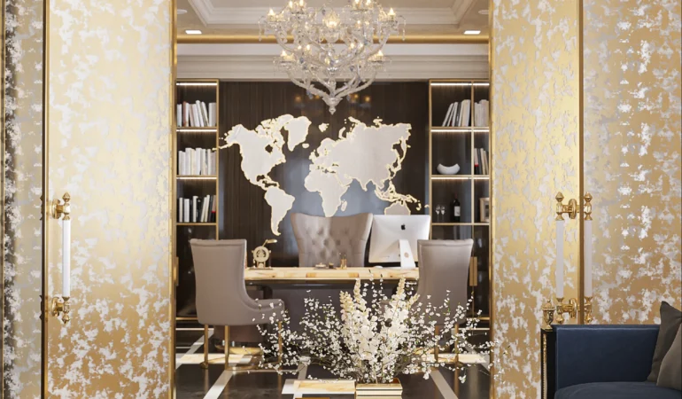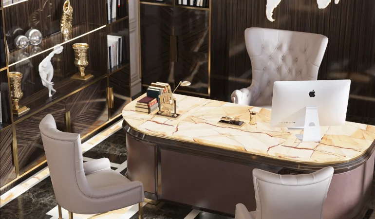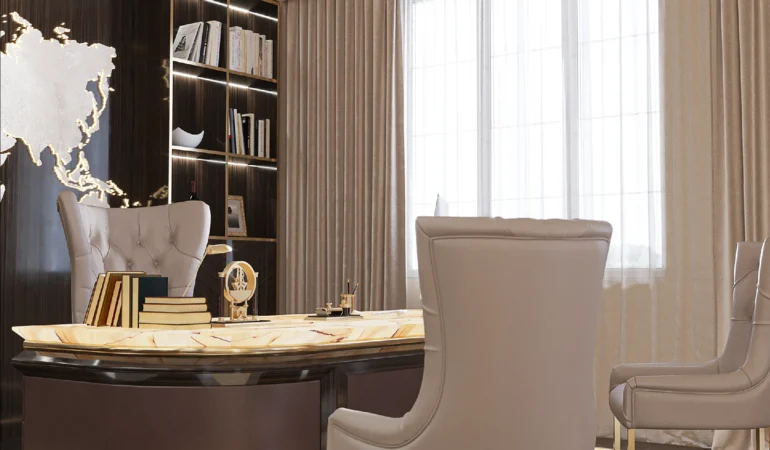 Така структура робочого кабінету ідеально підходить для тих, хто цінує красу та функціональність свого робочого простору, водночас забезпечуючи максимальну ефективність роботи та можливість приймати гостей у невимушеній обстановці.